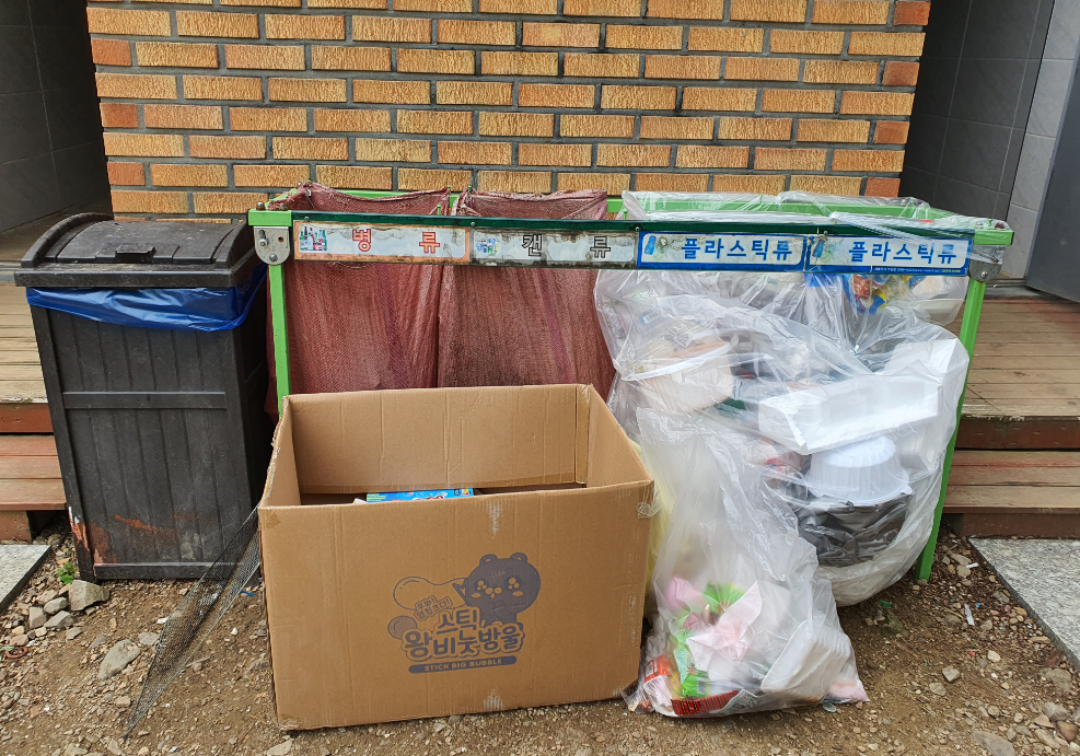 거기에 설거지가 가능합니다. 또 큰 쓰레기통이 있어 일반 쓰레기는 거기에 버리시면 된답니다.