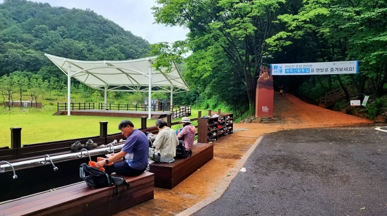 대전 가볼 만한 곳 여름 여행지로 추천하는 대전 계족산 황톳길 입구에는 세족시설이 잘 갖춰져서 수돗물에 발을 씻고 신발을 신고 내려오면 됩니다.