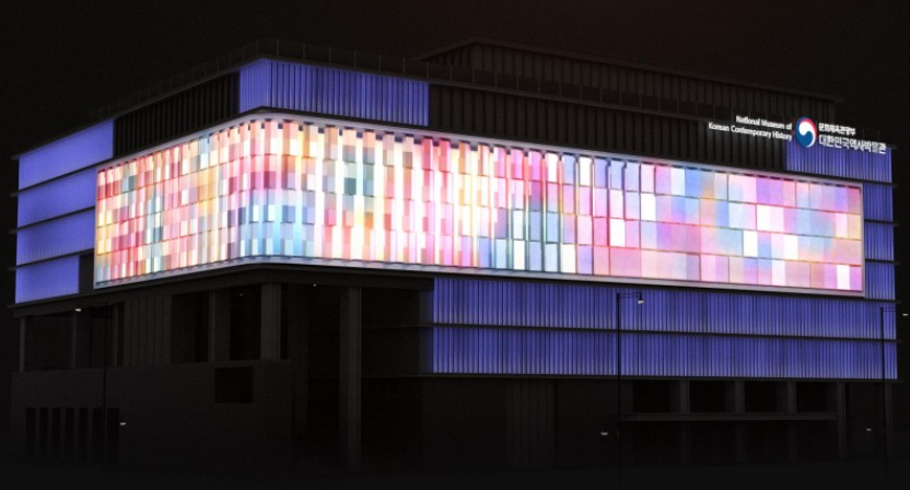 K-컬처 스크린은 '움직이는 예술'인 키넥틱 아트를 바탕으로 우리나라의 전통적 아름다움과 현대적 이미지를 교차하여 역동성을 표현한 작품입니다. 실제로 외벽에 있는 거대한 스크린을 보고 있자면 웅장한 크기와 다양한 콘텐츠가 눈길을 끌게 됩니다.