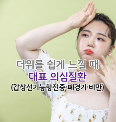 오늘은 더위를 쉽게 느낄 때 대표 의심질환(갑상선기능항진증·폐경기·비만)에 대해 알아보겠습니다.
