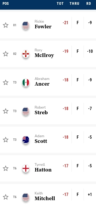 2라운드까지 12언더파로 공동 6위였던 파울러는 사흘간 합계 21언더파 195타를 기록해 단독 선두로 뛰어올랐다고 합니다.