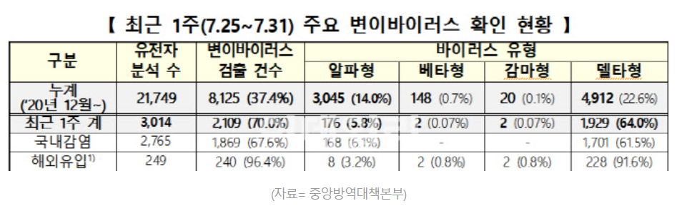 중앙방역대책본부(방대본)은 8월 3일 "델타 플러스 변이 사례가 2명 확인됐다"고 밝혔다고 합니다.