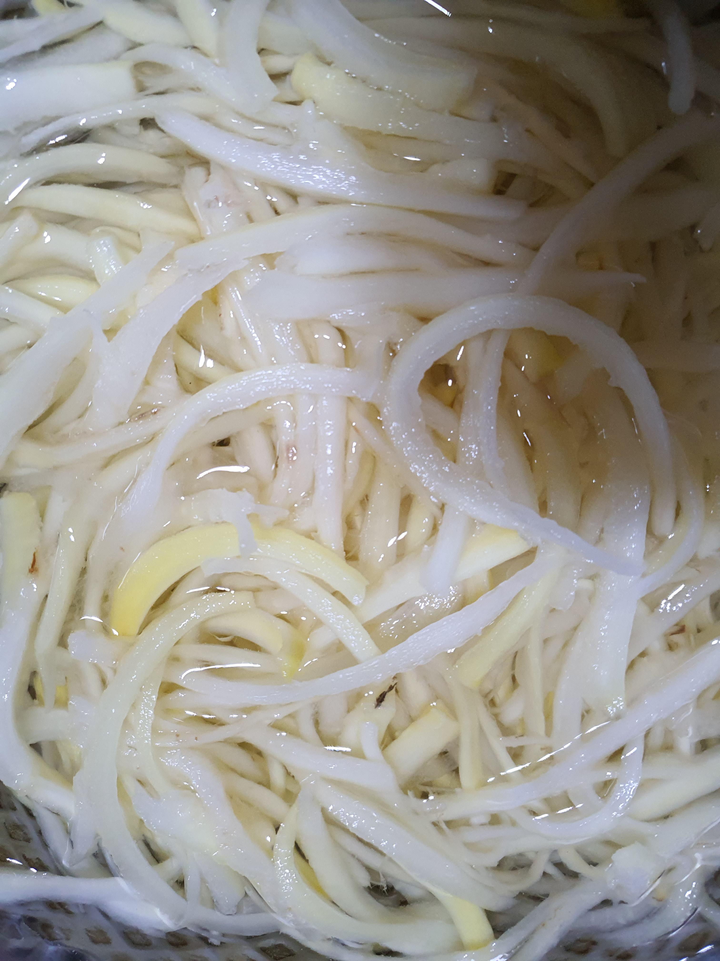 깐 도라지는 껍질을 벗긴 상태로 보관하면 색이 변하므로 꼭 물에 담가 두어야 한다고 합니다.