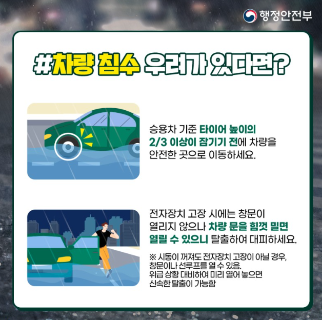 도로 침수 대처법(장마·집중호우 시 운전자 대처방법)