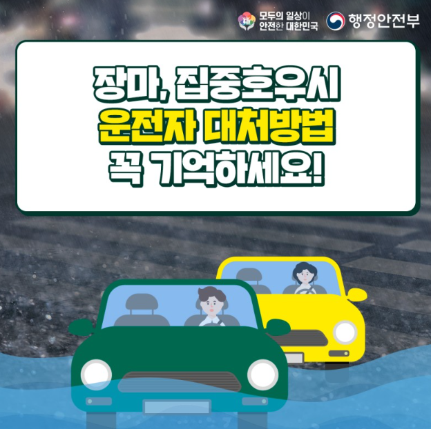 장마, 집중호우 시 운전자 대처방법을 꼭 기억하세요!