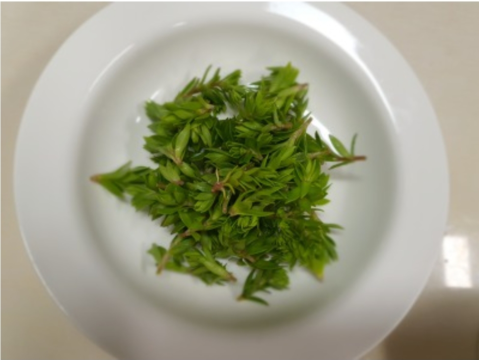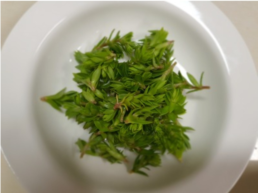 1. 돌나물을 깨끗이 다듬고 큰 잎송아리를 떼어 물에 씻어서 건져 물기를 뺍니다.