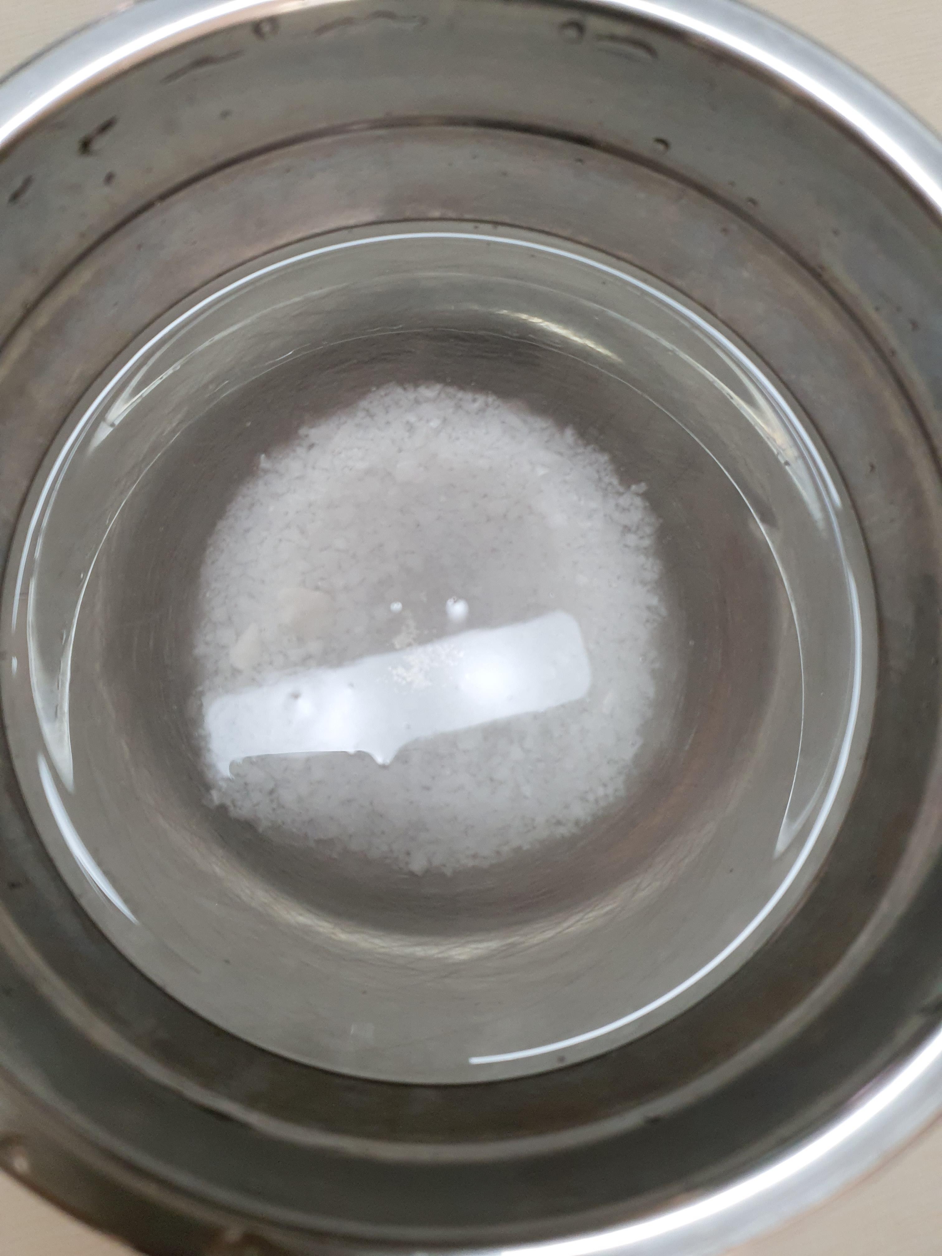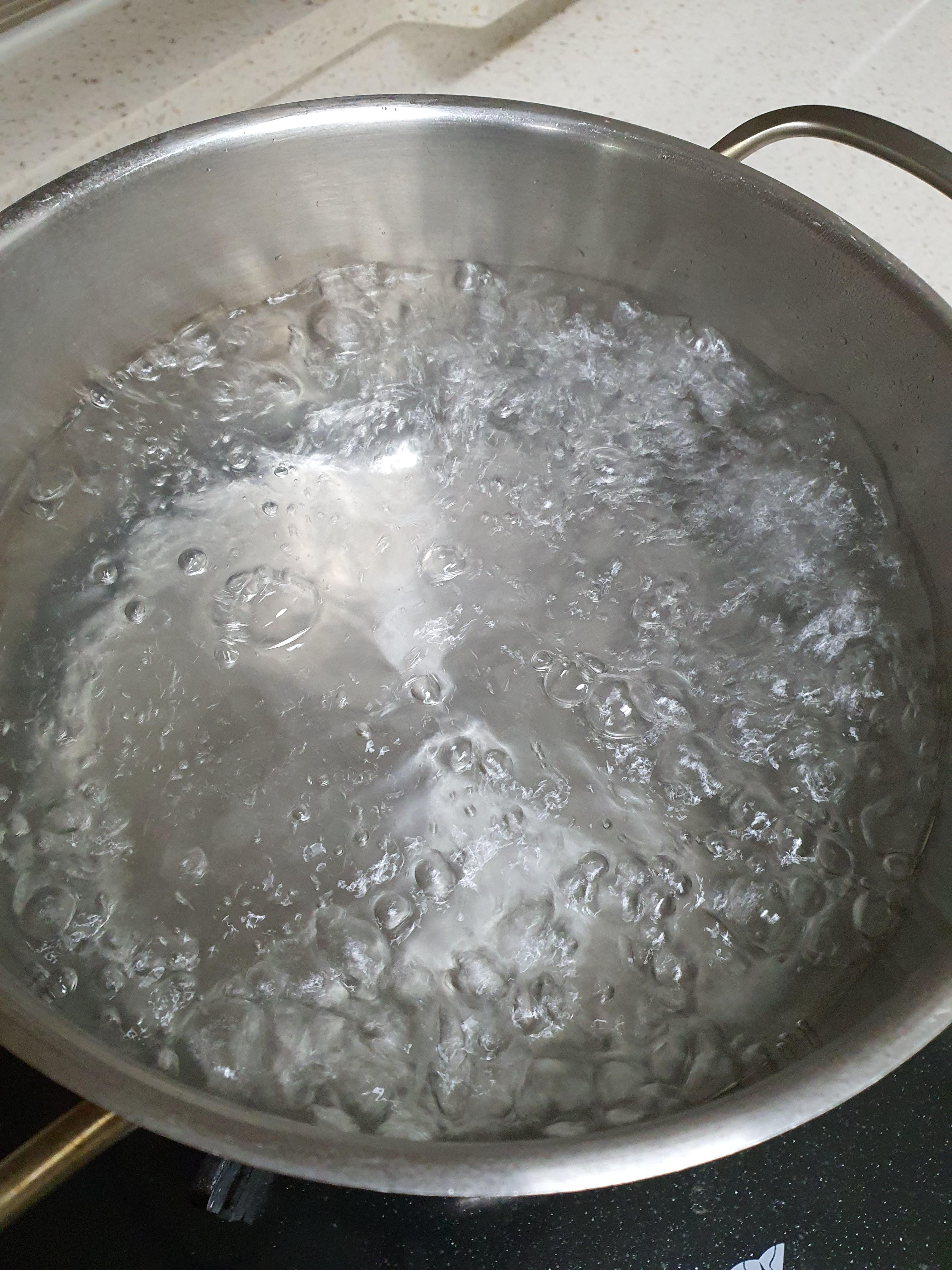 1. 냄비에 물을 넣고 소금 1숟가락을 넣어 끓여줍니다.