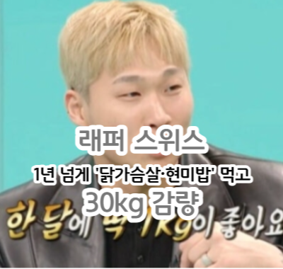 오늘은 래퍼 스위스가 1년 넘게 '닭가슴살·현미밥' 먹고 30kg 감량했다고 하여 소식 전해드리겠습니다.