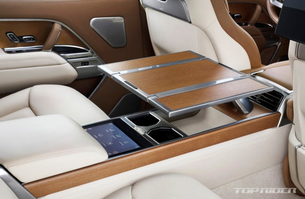 기어 레러와 컨트로러 등 실내 디테일은 세라믹으로 마감됐다고 합니다. SV를 위해 맞춤 제작된 크리스탈 샴페인 글라스가 제공된다고 합니다 신형 레인지로버 P530 SV에는 4.4리터 V8 트윈 터보 엔진이 얹어져 최고출력은 530마력, 최대토크는 76.5 kgm이라고 합니다. 최대 900mm 도강이 가능하다고 합니다.