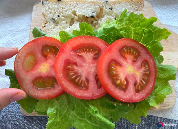 3. 준비해 둔 쌈채소, 토마토, 슬라이스 햄을 차례로 올려줍니다.