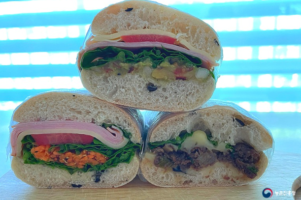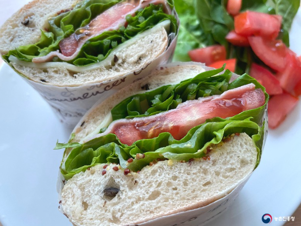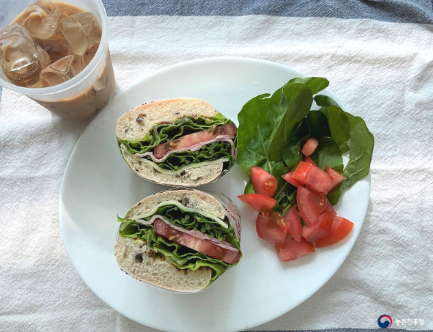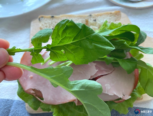 수확한 루꼴라로 무더위에 지쳤을 때 먹기 좋은 콜드 샌드위치를 만드러 보겠습니다. 쌉싸름하면서도 고소한 맛이 입맛을 돋아 주고 간편하게 먹을 수 있습니다.