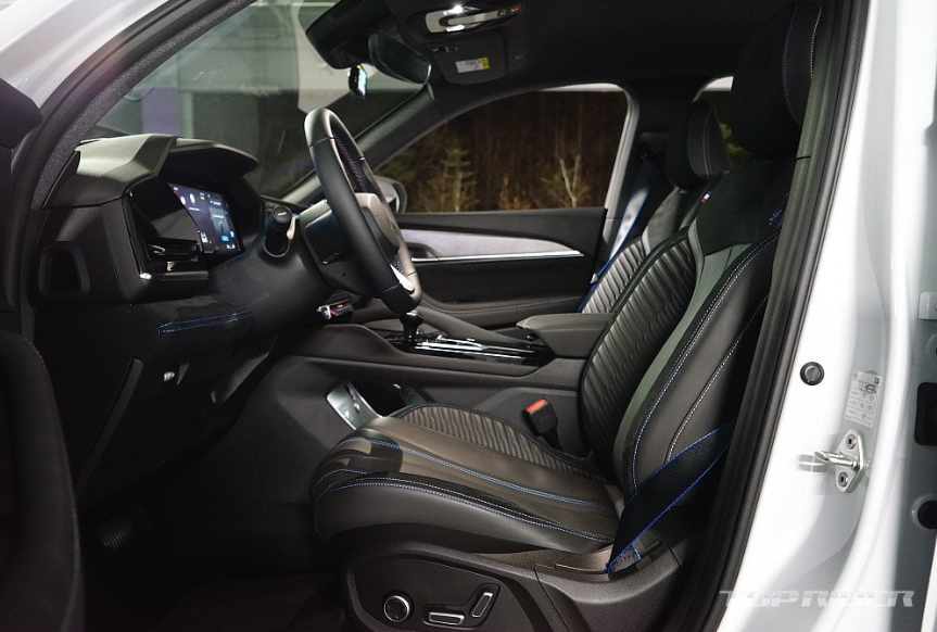 실내에서는 부분적으로 적용된 스웨이드 소재와 컬러 스티치를 통해 에스프리 알핀 트림을 구분합니다. 스포티한 분위기를 원한다면 에스프리 알핀을, 밝고 화사한 분위기가 좋다면 아이코닉을 추천합니다. 다양한 분위기에서의 고급감은 아무래도 에스프리 알핀이 앞섭니다.