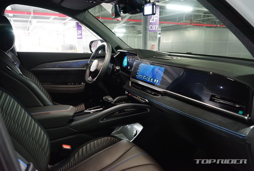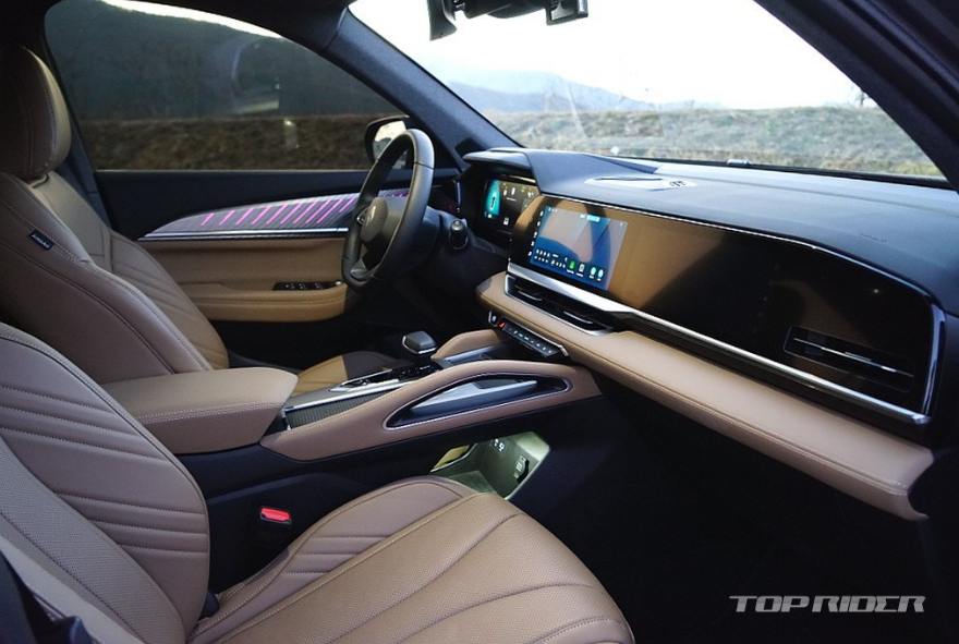 실내에서는 부분적으로 적용된 스웨이드 소재와 컬러 스티치를 통해 에스프리 알핀 트림을 구분합니다. 스포티한 분위기를 원한다면 에스프리 알핀을, 밝고 화사한 분위기가 좋다면 아이코닉을 추천합니다. 다양한 분위기에서의 고급감은 아무래도 에스프리 알핀이 앞섭니다.