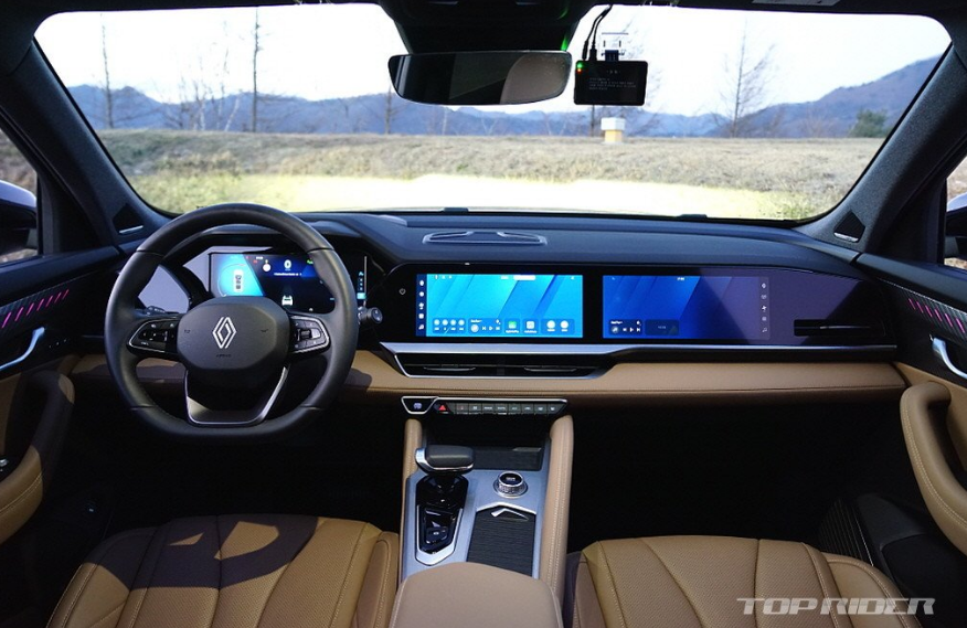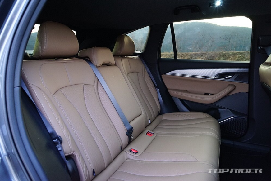 개인적으로 스웨이드 소재를 시트에 사용하는 것을 선호하지 않는데, 그랑 콜레오스는 영리하게 체중이 실리지 않는 디테일 부분에 선택적으로 스웨이드 소재를 사용, 감성적인 부분을 충족시키면서 더워지거나 체중에 눌리는 상황은 피했습니다. 나파 인조가죽은 촉감이 좋습니다.