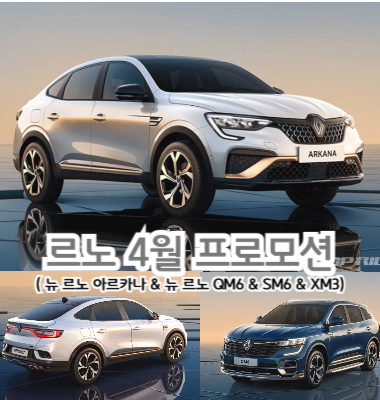 오늘은 르노코리아가 르노 4월 프로모션( 뉴 르노 아르카나 & 뉴 르노 QM6 & SM6 & XM3)을 공개해 소개해 드리겠습니다.