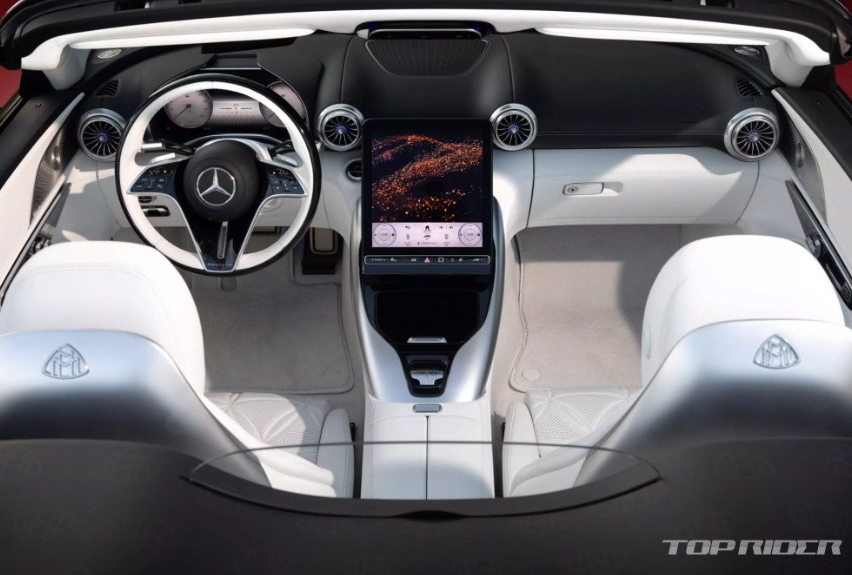 마이바흐 SL680 모노그램 외관 컬러는 레드와 블랙 혹은 화이트와 블랙 투톤 조합을 선택할 수 있습니다. 실내에는 클스탈 화이트 나파 가죽으로 마감된 스티어링 휠과 시트, 하단 대시보드 및 도어 패널이 배치됐다고 합니다. 특히 마이바흐 SL680 모노그램은 SL과 다르게 2인승입니다.