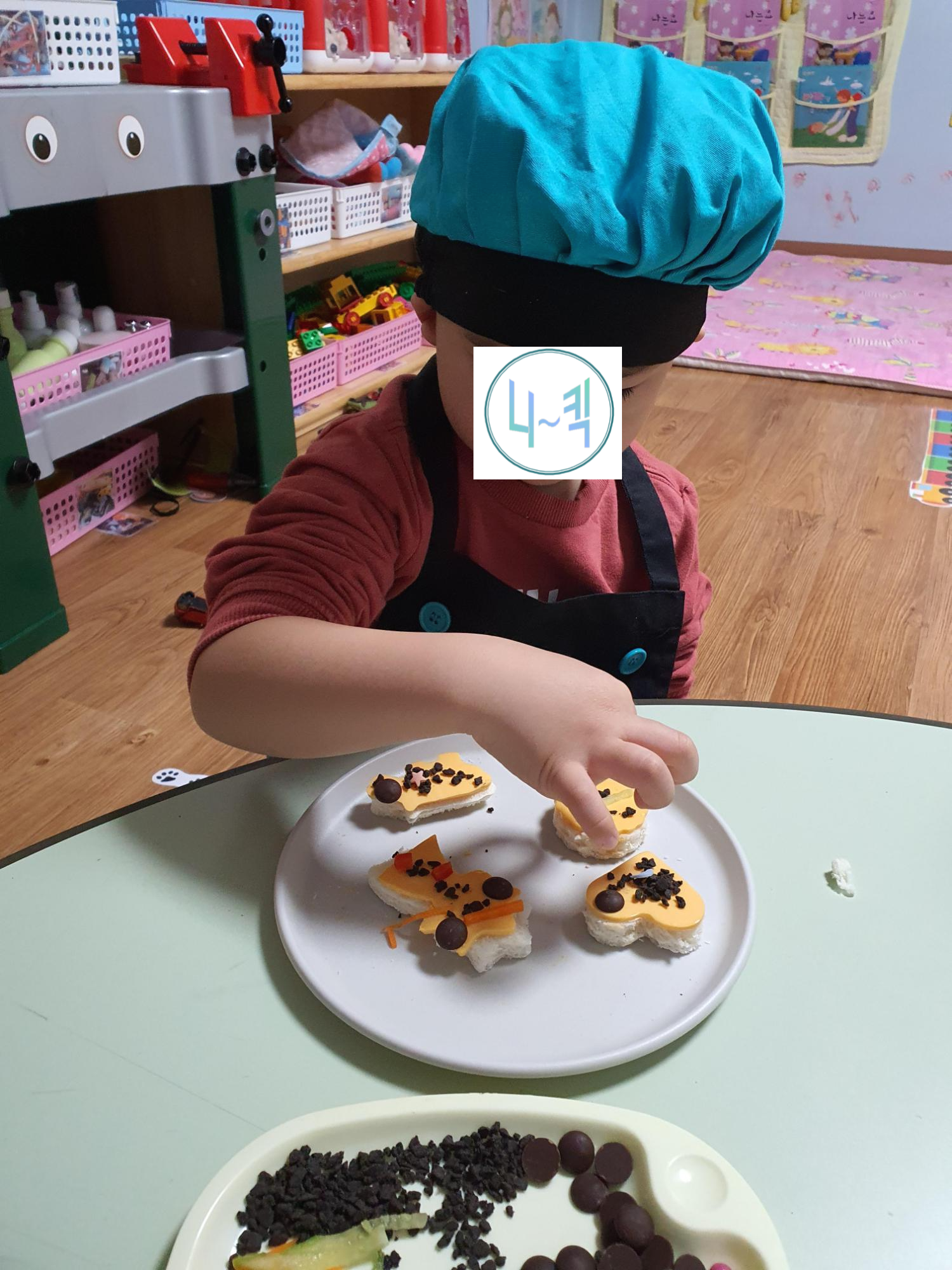여기까지 만2세 요리활동 모양식빵꾸미기를 해보았습니다.