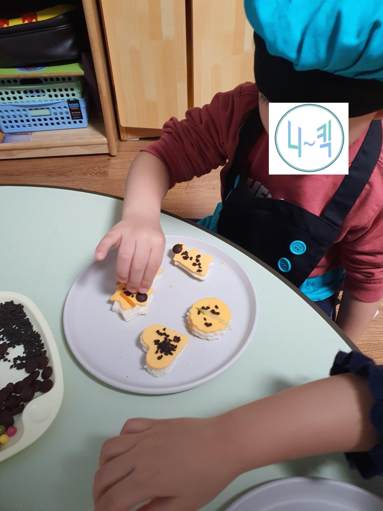 오늘은 어린이집 만2세 요리활동중 모양식빵꾸미기를 하며 글을 올려보려고 합니다.