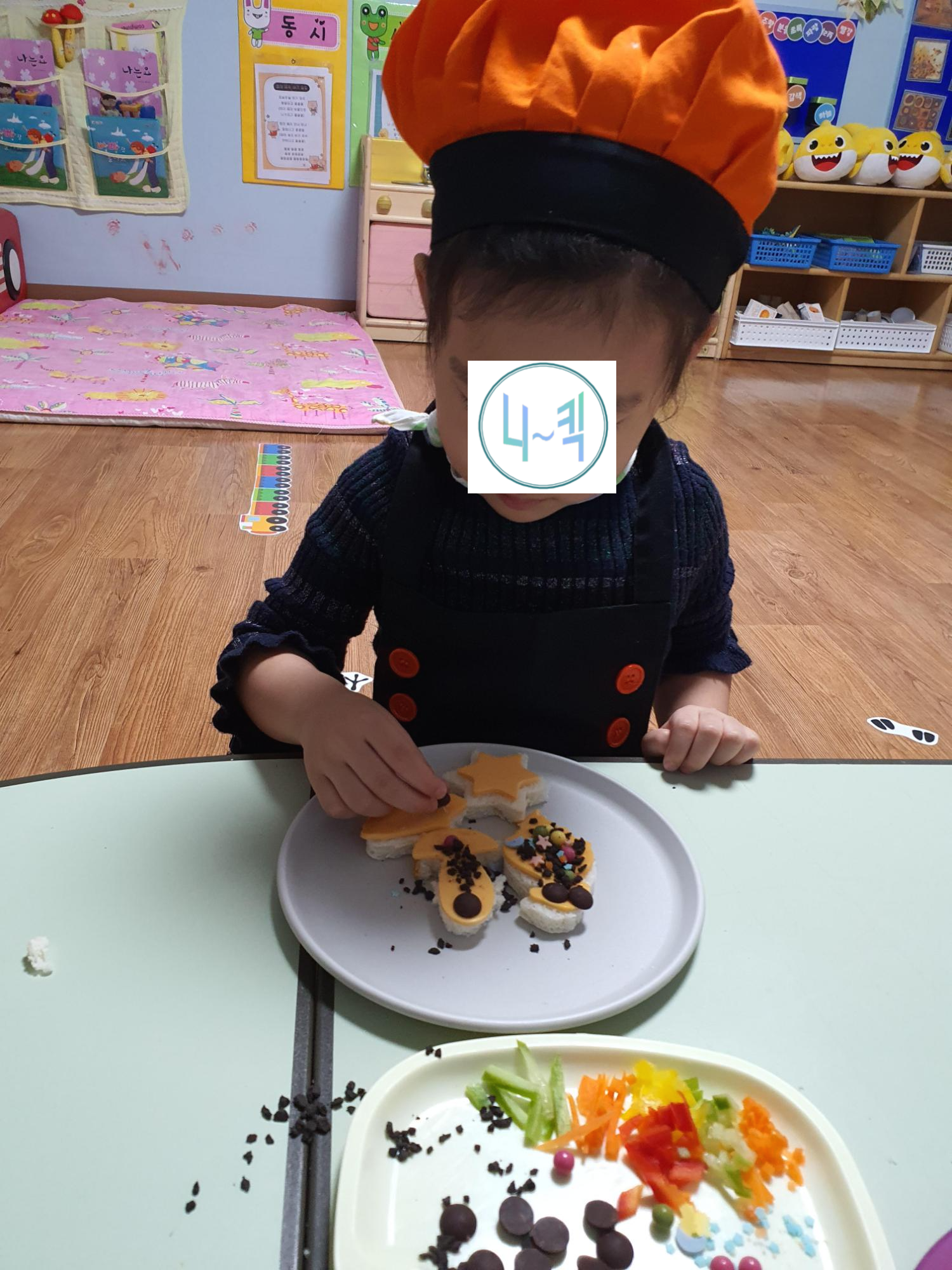 여기까지 만2세 요리활동 모양식빵꾸미기를 해보았습니다.