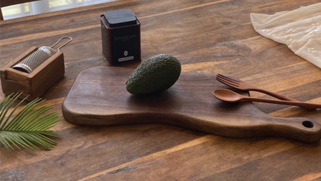 캄포 나무로 만든 원목 도마입니다. 캄포 나무만의 통원목 그대로 가공하는 나무도마로 특별한 향도 솔솔나고 향균효능도 좋으며 빠르게 건조가 된다고 합니다.