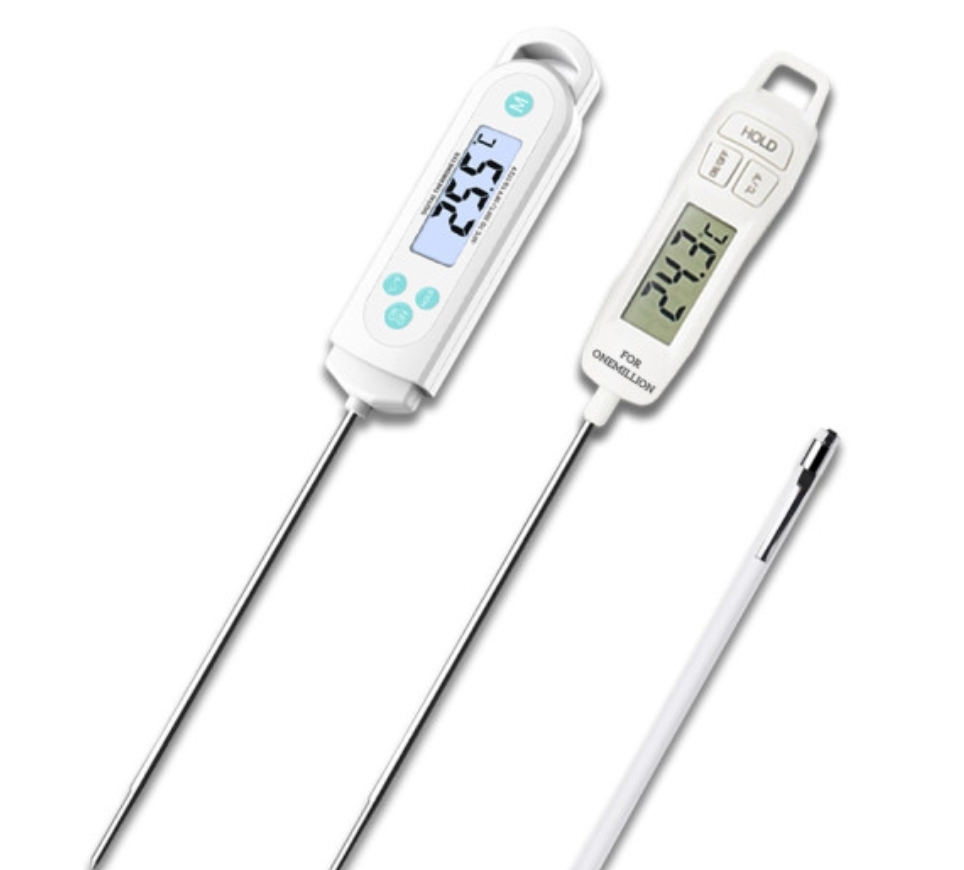 탐침 온도계는 고기를 굽거나 요리를 할 때 사용하는 온도계입니다. 스테이크를 잘 구우려면 내부 온도를 알아야 하고 온도를 측정하기 위해서 탐침 온도계를 사용합니다.