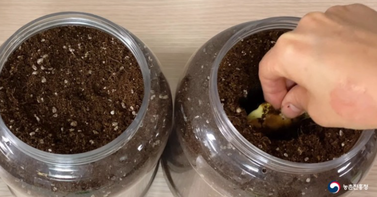 뿌리내리기시작한 씨앗을 화분에 심어줍니다. 망고 씨를 심을 때는 뿌리가 아래쪽을 향하도록 하는데, 윗부분이 완전히 덮이지 않도록 살짝만 덮어줘야 합니다. 망고는 고온다습한 환경을 좋아하기 때문에 물을 흠뻑 주고 햇빛이 잘 드는 창가에 놓아둡니다.