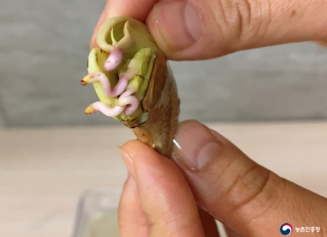 일주일 뒤에 확인하면 발아에 성공하여 뿌리 내리기를 시작할 수 있습니다.