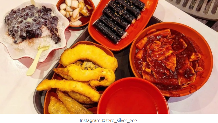 이때, 팥빙수로 매운 속을 달래주면 됩니다. 달콤한 팥과 연유가 듬뿍 뿌려진 클래식한 팥빙수인데, 매운 떡볶이와 함께 맵단맵단을 즐기다 보면 끝없이 먹을 수 있습니다. 매운 떡볶이 소스에 찍어먹는 튀김과 김밥까지! 한 번 드셔보시길 추천합니다.
