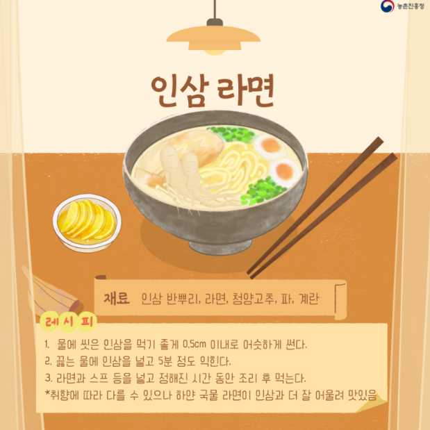 Tip : 취향에 따라 다를 수 있으나 하얀 국물 라면이 인삼과 더 잘 어울립니다.
