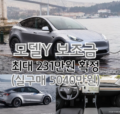 그럼 여기까지 테슬라 모델Y 보조금 최대 231만 원 확정(실구매 5040만 원)되어 소식 전해드렸습니다.
