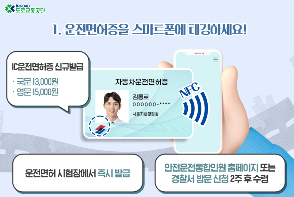 이 방법으로 발급할 시 스마트폰 교체, 분실 시에도 다시 방문 없이 어디서나 IC운전면허증을 활용해 재발급 가능합니다.