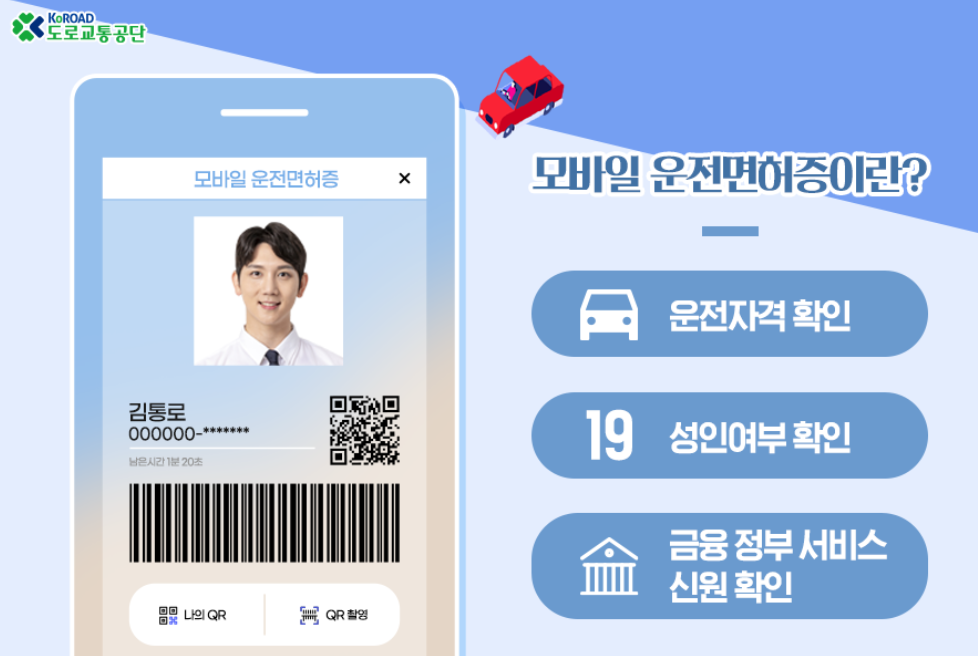 개인 스마트폰에 발급하는 운전면허증으로 현행 플라스틱 운전면허증과 동일한 법적 효력을 가지는 모바일 신분증입니다.