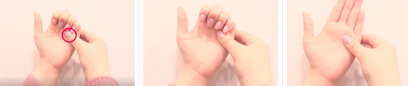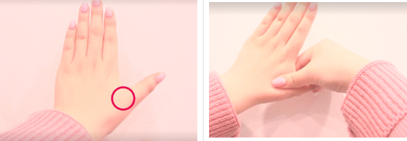 약지와 새끼손가락이 닿는 부분을 1~2분간 눌러주며 지압해 줍니다.
