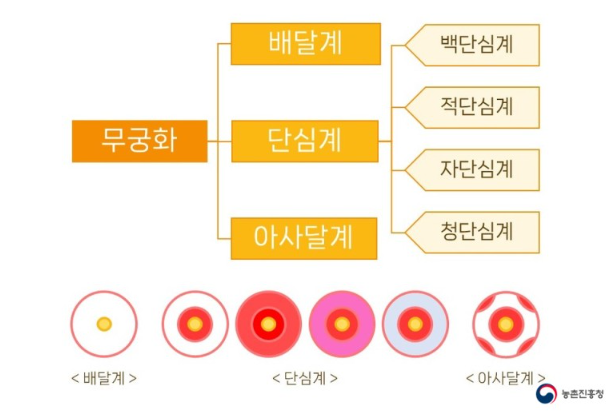 꽃잎에 붉은 아사달 무늬가 있는 '아사달계'