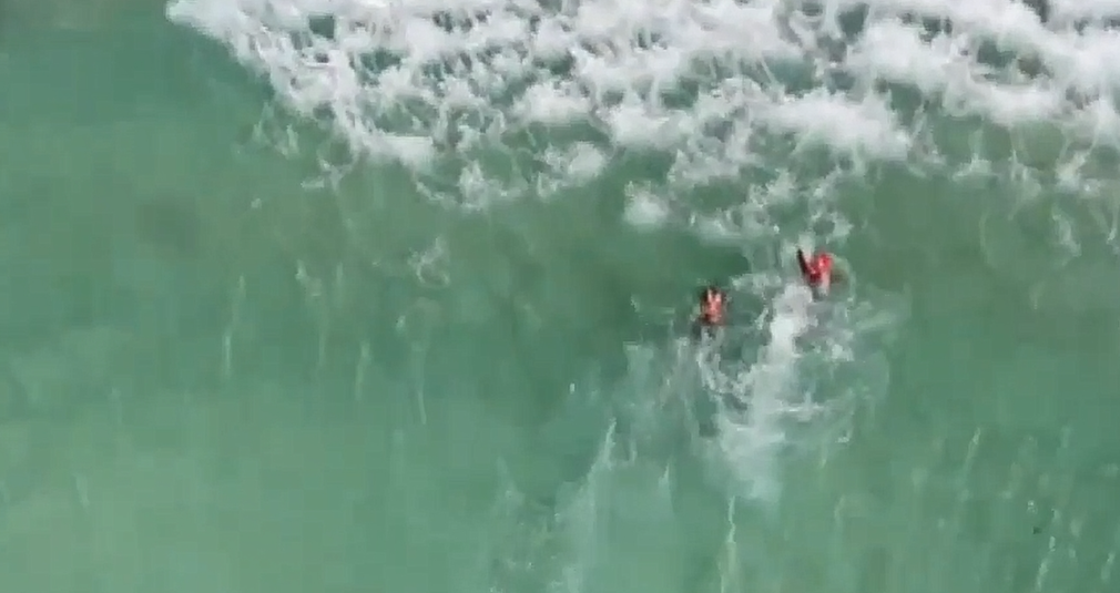 ★ 거센 파도에 밀려 나갔을 때에는 파도에 대항하지 말고 비스듬히 헤엄쳐 육지를 향한다.