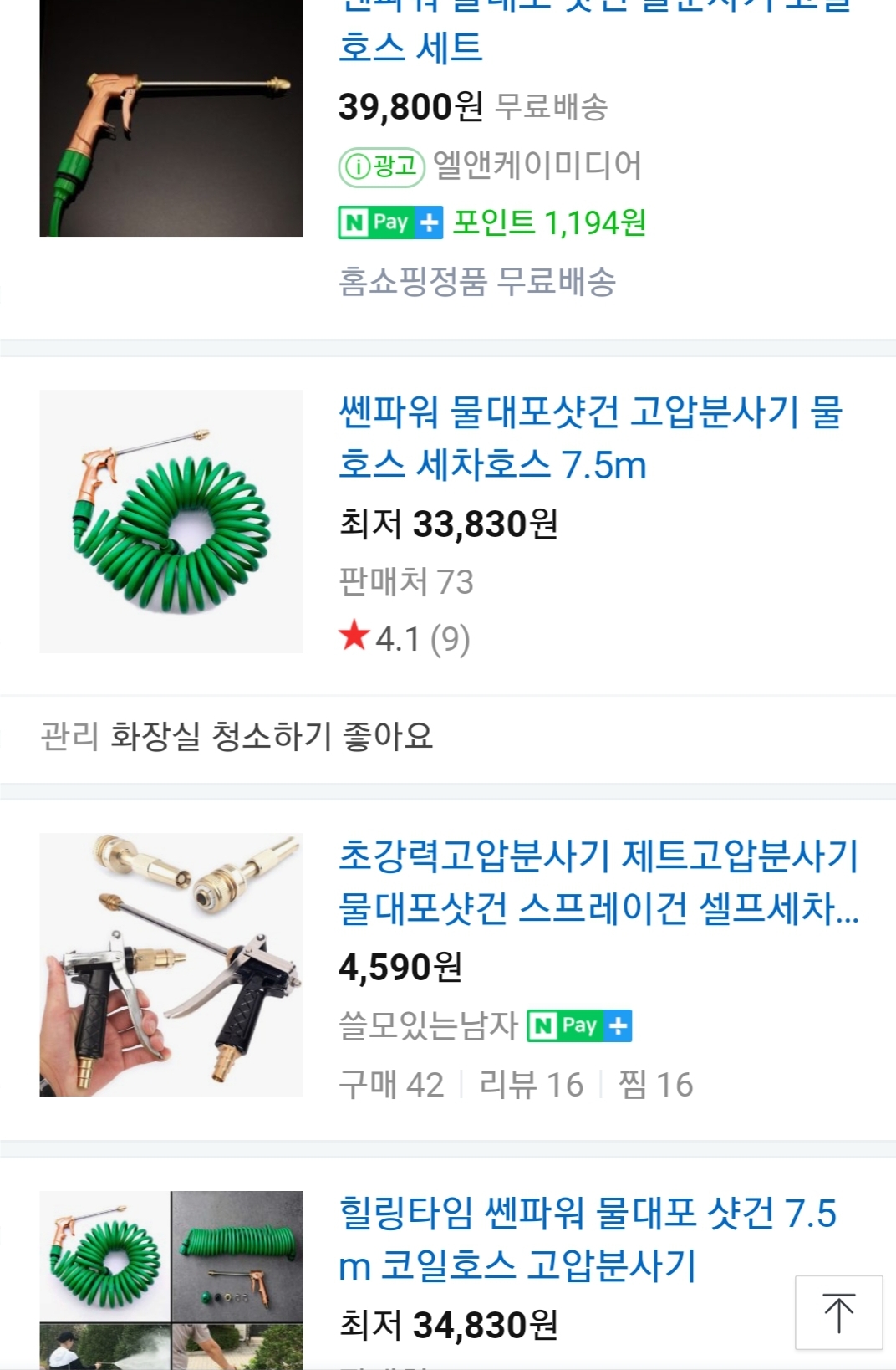 좀 호스가 좀 긴 물 분사기를 사야겠다 맘먹었는데..