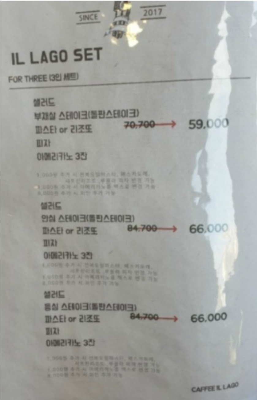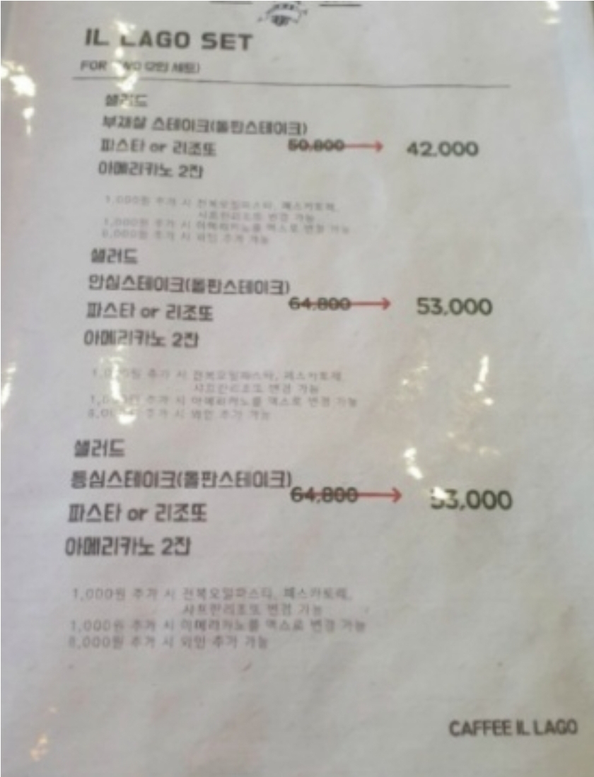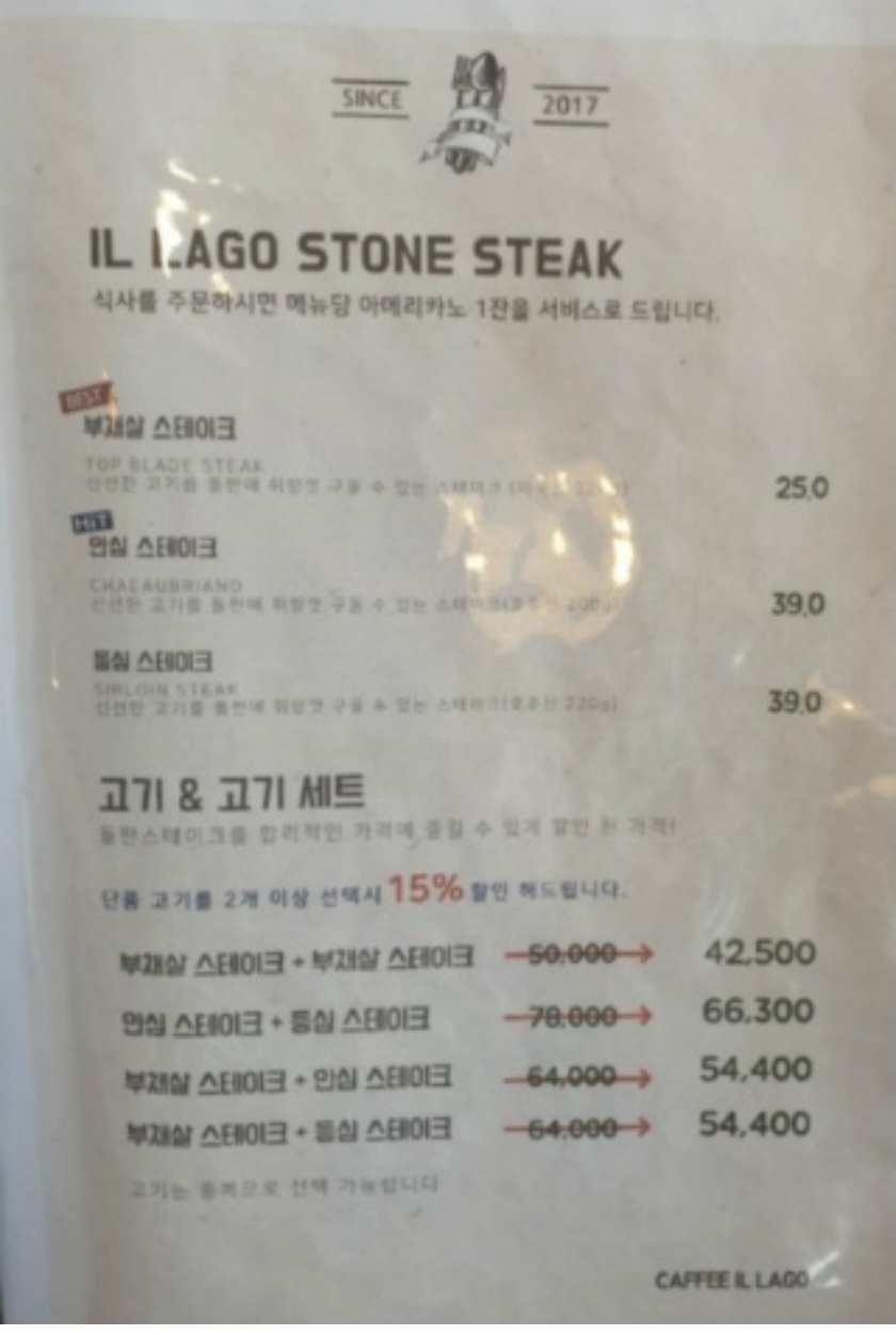 스테이크랑 파스타 가격 입니다.