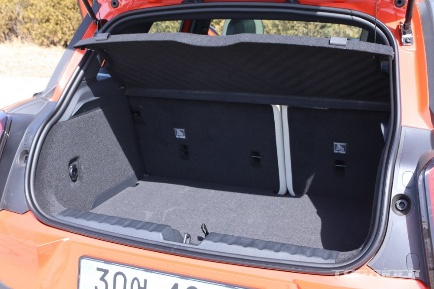 대시보드와 도어 트림에는 100% 재활용 폴리에스테르 직물 장식이 사용됐는데, 고객 취향에 따라 고급감이 아쉬울 수 있습니다. 센터 콘솔 박스 크기도 다소 작습니다. 센터페시아 하단과 도어 트림 공간 활용성은 만족스럽습니다. 트렁크 용량은 기본 300ℓ, 최대 1005ℓ까지 확장된다고 합니다.