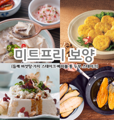 오늘은 미트프리 보양식(들깨 버섯탕·가지 스테이크·베지볼·통 두부 스테이크) 4가지를 소개해 드리겠습니다.
