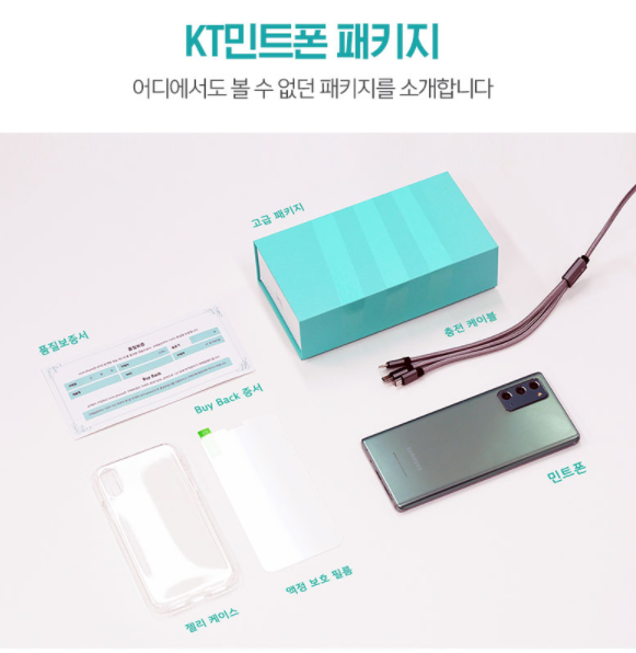 KT는 민트폰이 최대 1년의 품질보증 기간을 제공하며 구매가의최대 50%를 보장해 1년 뒤 재매입하는 바이백(Buy-Back) 옵션도 기본으로 제공하는 점이 특징이라고 설명했다고 합니다.