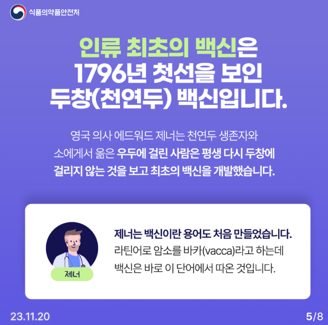 제너는 백신이란 용어도 처음 만들었다고 합니다.