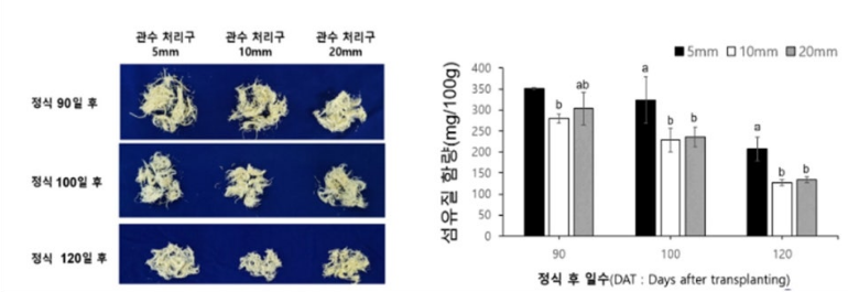< 관수에 따른 고구마 섬유조직과 섬유질 함량 비교 >