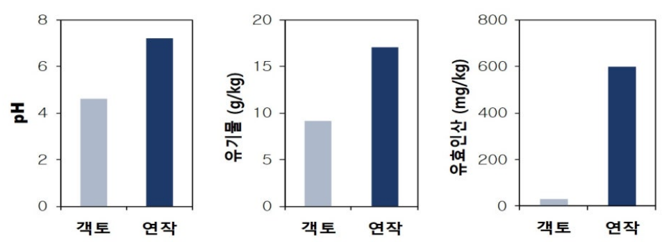 < 객토와 연작 포장에서 토양 이화학적 특성 비교 >