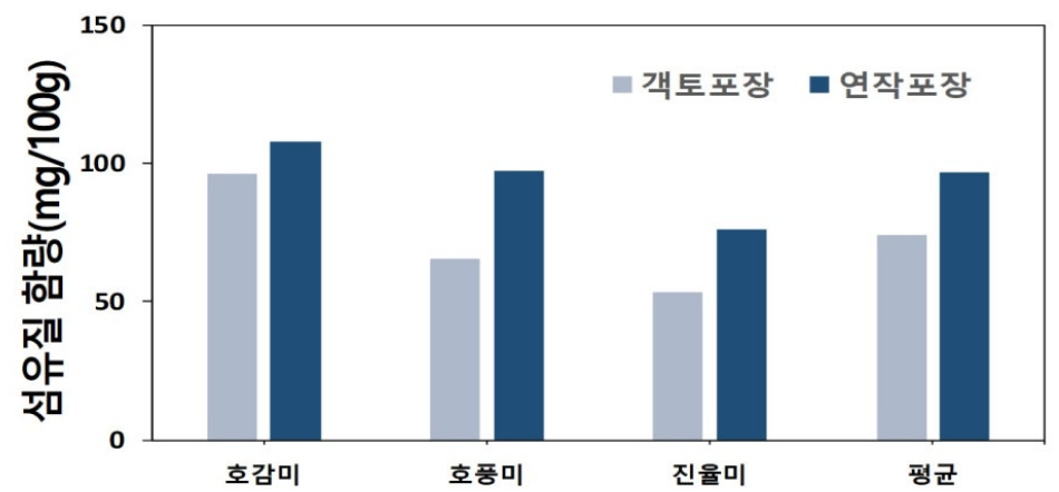< 객토와 연작 포장에서 품종별 섬유질 함량 비교 >