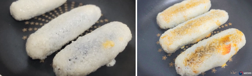 Tip : 밥에 참기름이 들어갔기 때문에 기름을 넣지 않아도 됩니다.