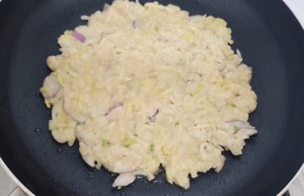 7. 노릇노릇하게 익을 때까지 부쳐주면 밥전이 완성됩니다.