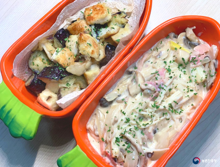 버섯 요리 두 가지(버섯가지튀김 & 트리플 팽이버섯 파스타)