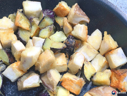 Tip : 처음부터 센 불로 하면 재료가 가진 수분으로 인해 기름이 튈 수 있으니, 중간 불로 익히다가 점점 불의 세기를 높여줍니다.