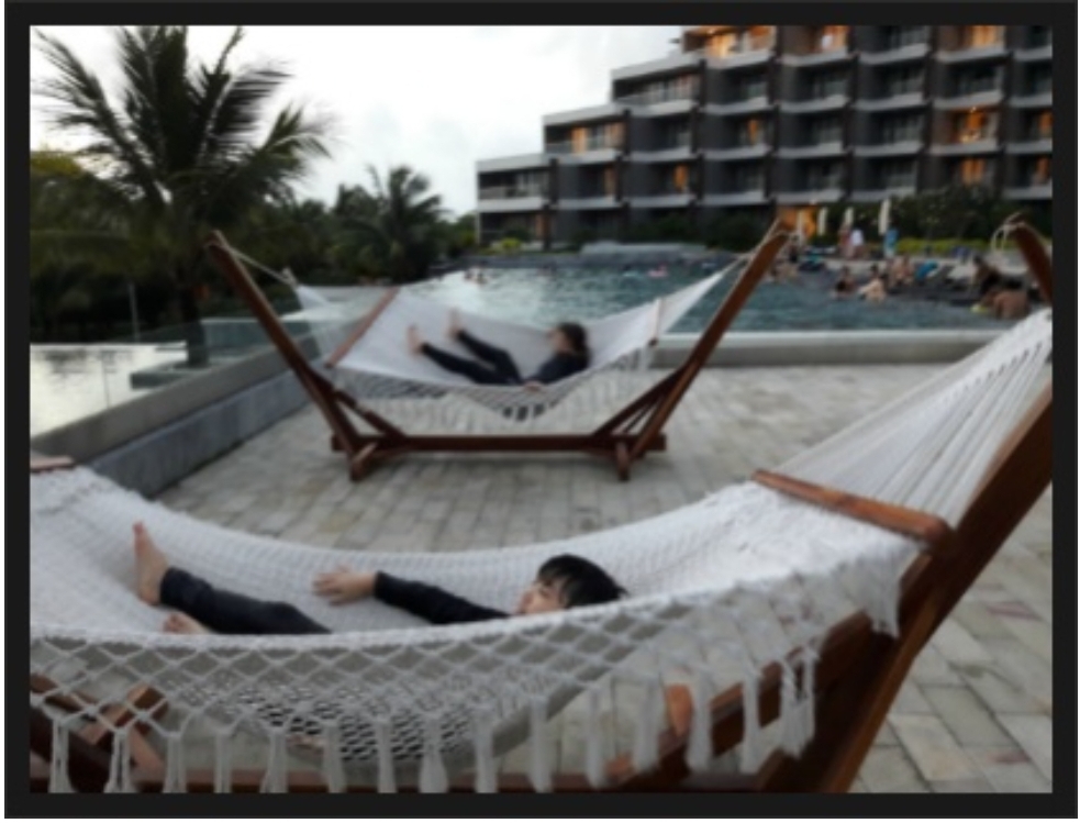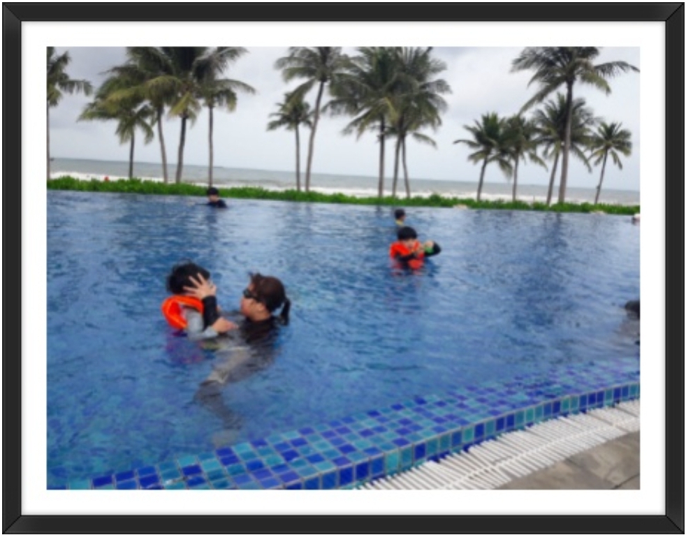 호텔로 오자마자 아가들은 수영복으로 갈아입고 밖으로 나가 수영을 했답니다.