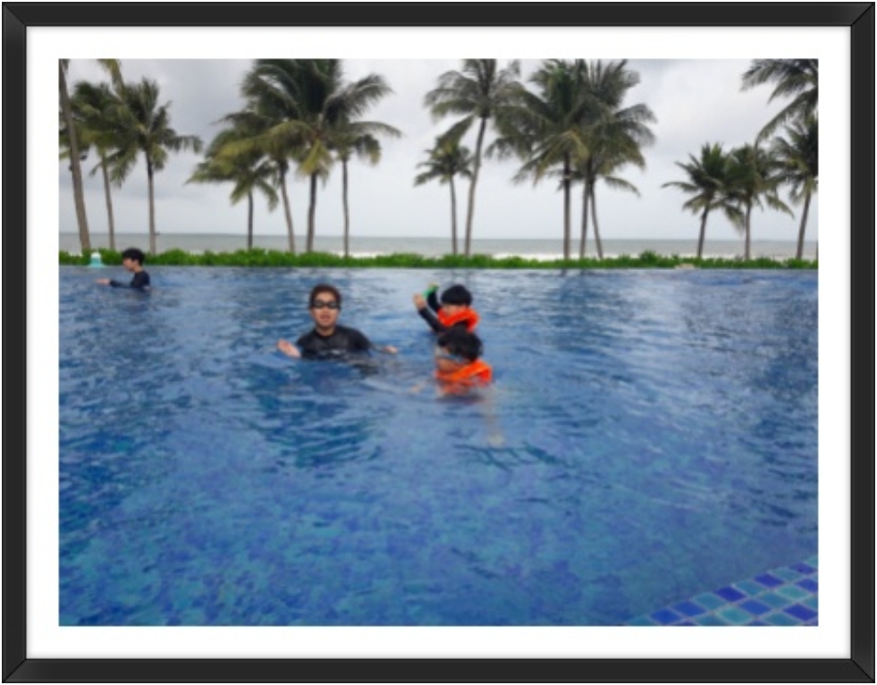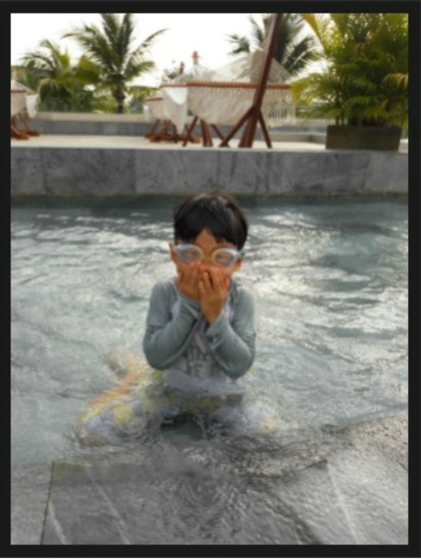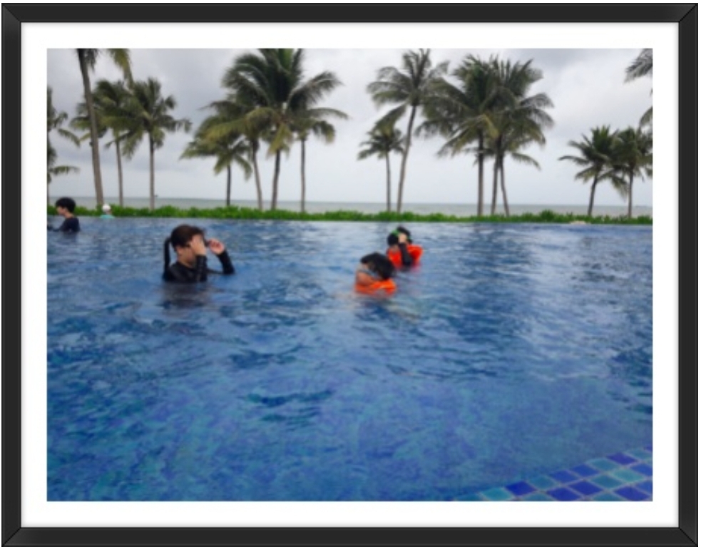 호텔로 오자마자 아가들은 수영복으로 갈아입고 밖으로 나가 수영을 했답니다.